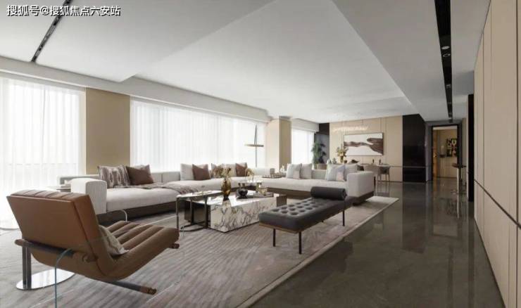 项目采用原生300㎡户型结构体系,在空间功能布局层面实现精准化设计:南向配置约100㎡开放式社交厅及50㎡主卧套间系统,依托三面采光布局形成270°全景视野界面。其中核心会客区配置9.6米连续观景面,结合双层low-E玻璃幕墙系统,实现建筑与自然的无界对话。