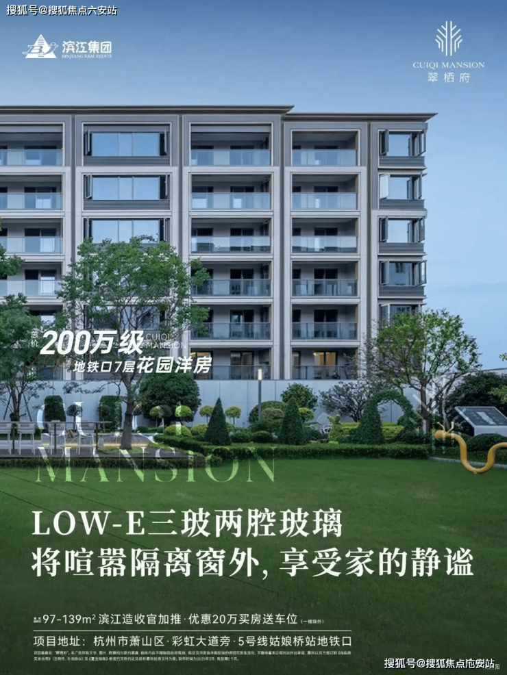 彩虹快速路通达滨江!滨江翠栖府117-139㎡精装洋房,首付72万起住进“天空之镜”